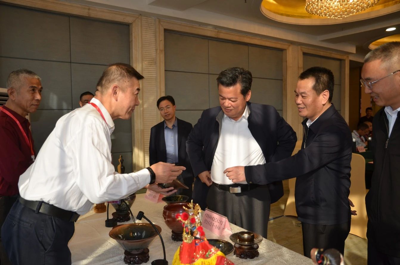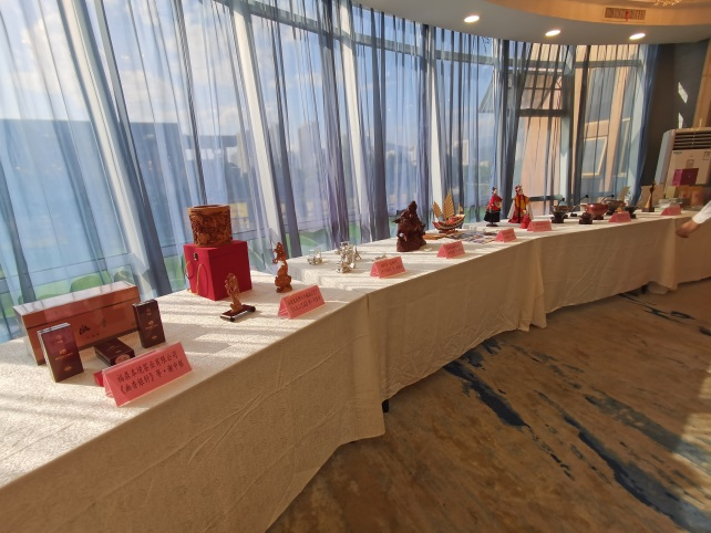 座谈会后,参会嘉宾展示了建盏、木偶、木雕、畲族服饰等作品。