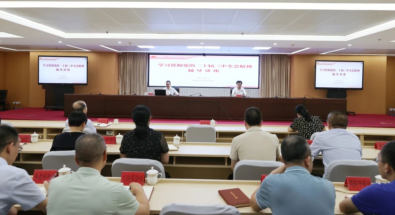 8月19日,福建省委宣讲团成员、省委改革办分管日常工作的副主任黄建清,在福建省人社厅宣讲党的二十届三中全会精神。厅党组书记、厅长孔繁军主持会议并讲话。厅党组成员、厅二级巡视员、各支部(党委)负责同志、机关处级以上干部约100人参会。