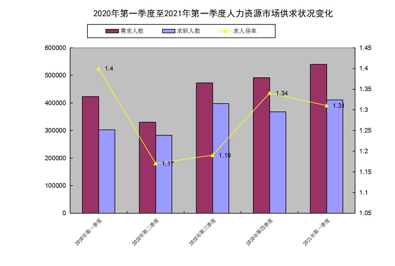 本季度分析数据来源于2021年第一季度全省九个设区市及部分县(市、区)级人力资源市场的职业供求登记。