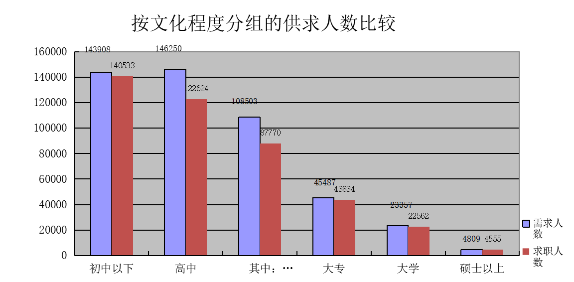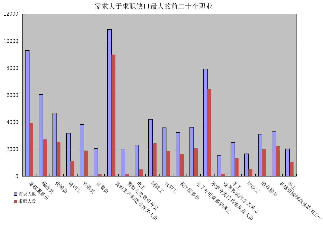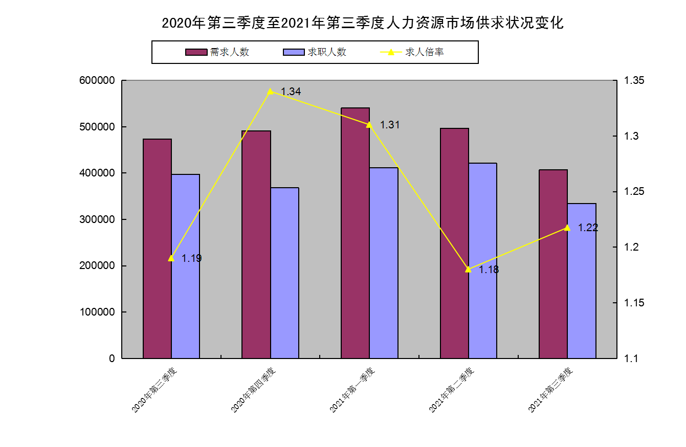 第三季度,岗位需求人数和求职人数环比均出现下滑,人力资源市场供求关系与上季度基本持平。大多数企业仍存在一定用工缺口,特别是对熟练操作工需求较大。