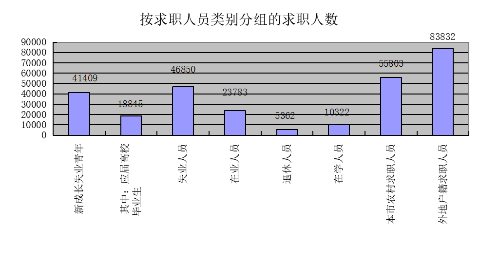 从求职人员类别上看,应届高校毕业生占求职总人数比重为7.05%,环比上升0.57个百分点,同比上升1.53个百分点,占新成长失业青年求职数的45.51%。